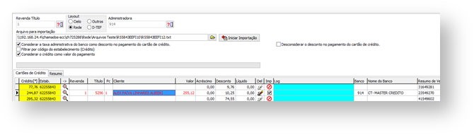 Figura 5 – Tela Importação de Cartão Crédito > EEFI > Resultado de Importação
