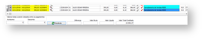 No cancelamento de vendas é enviado o NSU, onde é realizada a procura do título cancelado pela REDE e não é permitido o pagamento deste título, mostrando a seguinte informação na coluna Log: “Cancelamento de Vendas REDE”, conforme a tela abaixo: