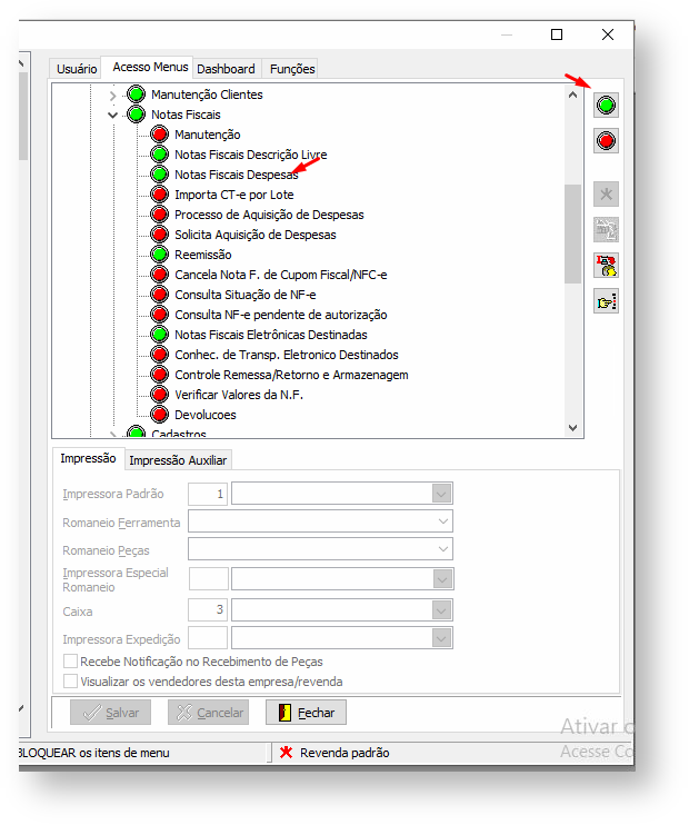 Menu: Configuração > Cadastros > Menus / Usuários > Usuários e Permissões