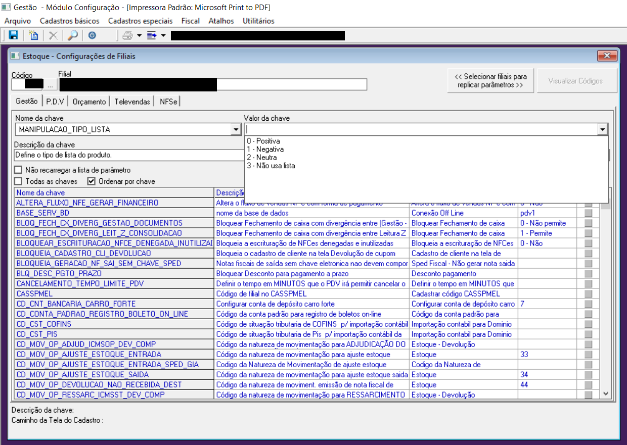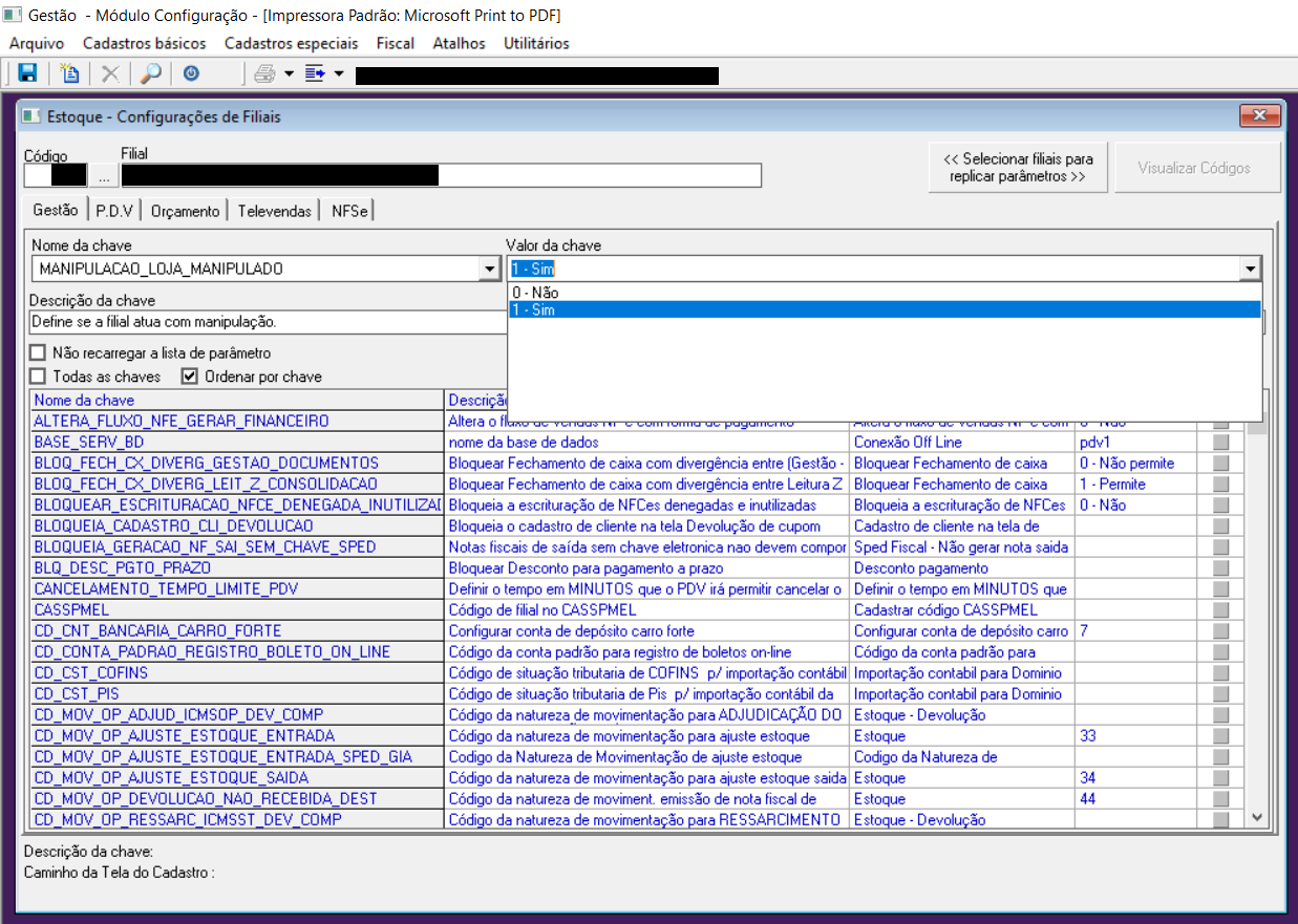 No Módulo Gestão Configuração - Cadastros Especiais - Configurações - Filiais - Tela: Estoque - Configurações de Filiais - Aba: Gestão, o parâmetro "MANIPULACAO_LOJA_MANIPULADO" tem como objetivo definir se a loja é de manipulação ou não.