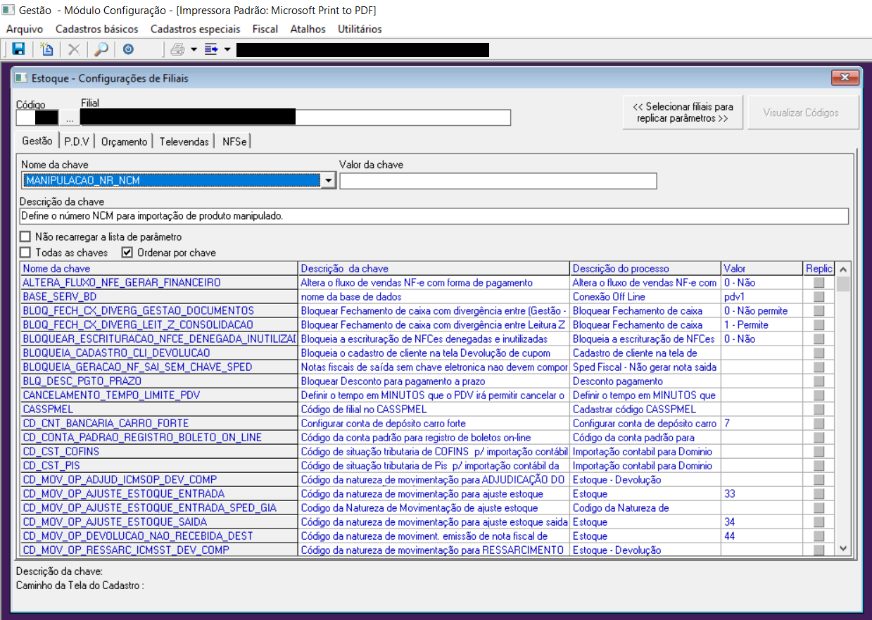 No Módulo Gestão Configuração - Cadastros Especiais - Configurações - Filiais - Tela: Estoque - Configurações de Filiais - Aba: Gestão, o parâmetro "MANIPULACAO_NR_NCM" possui um campo do tipo texto que permite inserir o número do NCM para realizar importação de produtos manipulados.