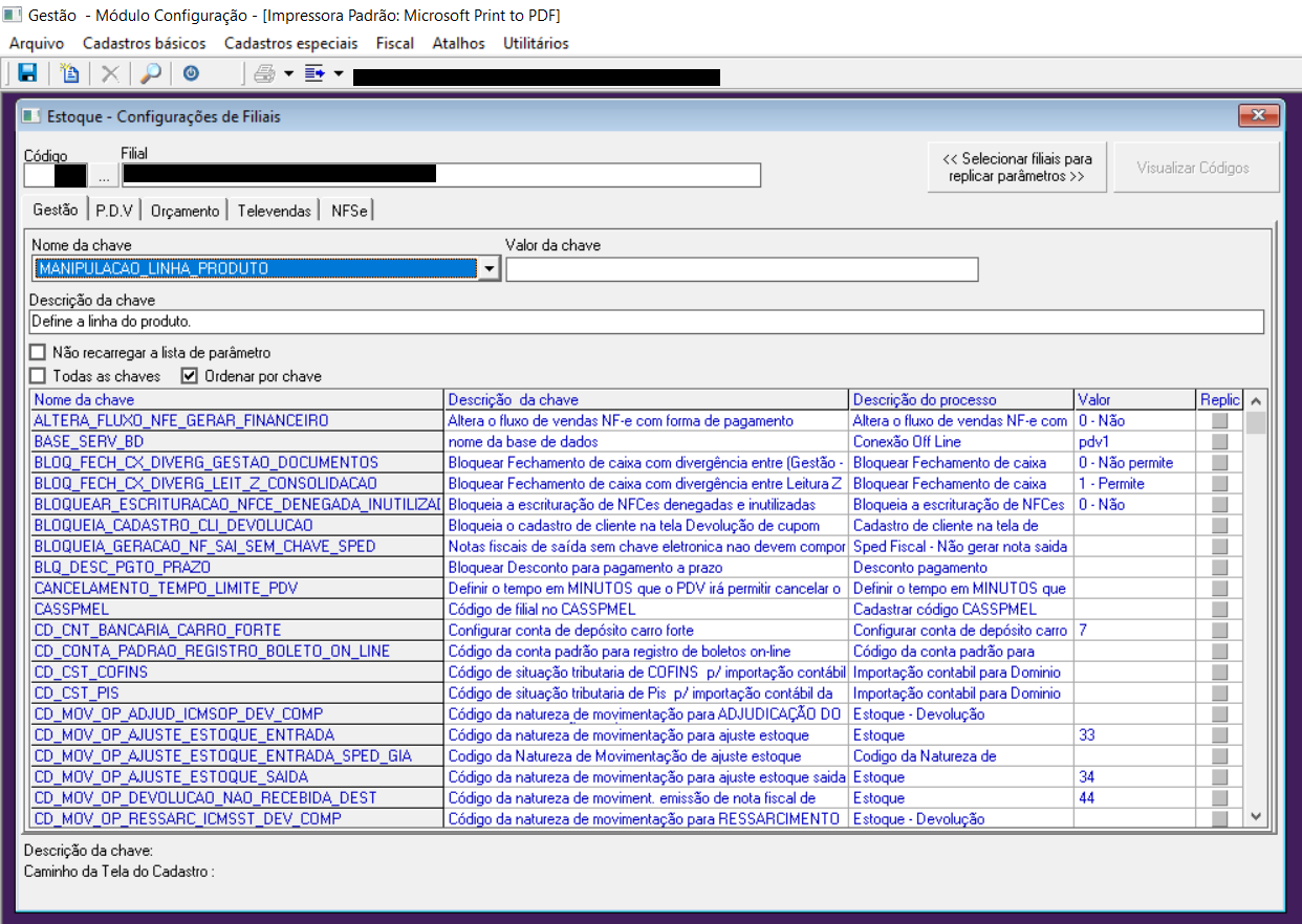 No Módulo Gestão Configuração - Cadastros Especiais - Configurações - Filiais - Tela: Estoque - Configurações de Filiais - Aba: Gestão, o parâmetro "MANIPULACAO_LINHA_PRODUTO" possui um campo do tipo texto que permite definir a linha do produto.