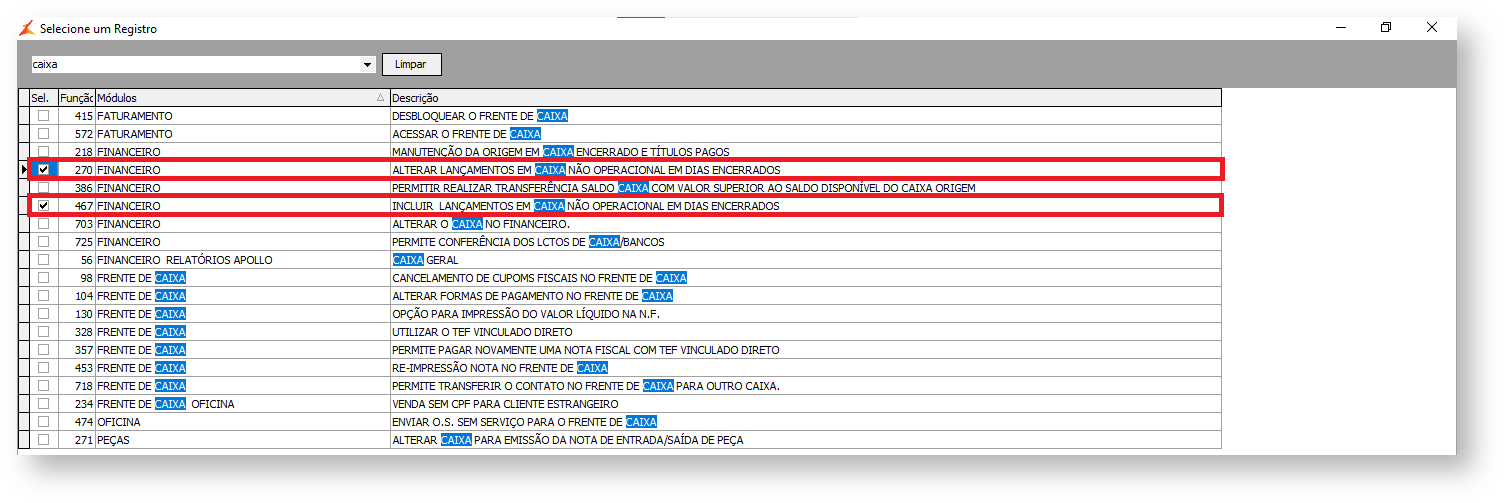 Além do descrito acima, o usuário precisa ter as seguintes funções para fazer o lançamento retroativo (funções 270 e 467):