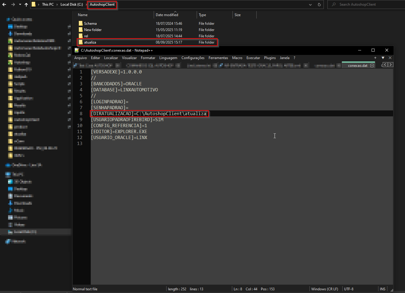 • caminho da pasta no diretório de atualização do Conexao.dat