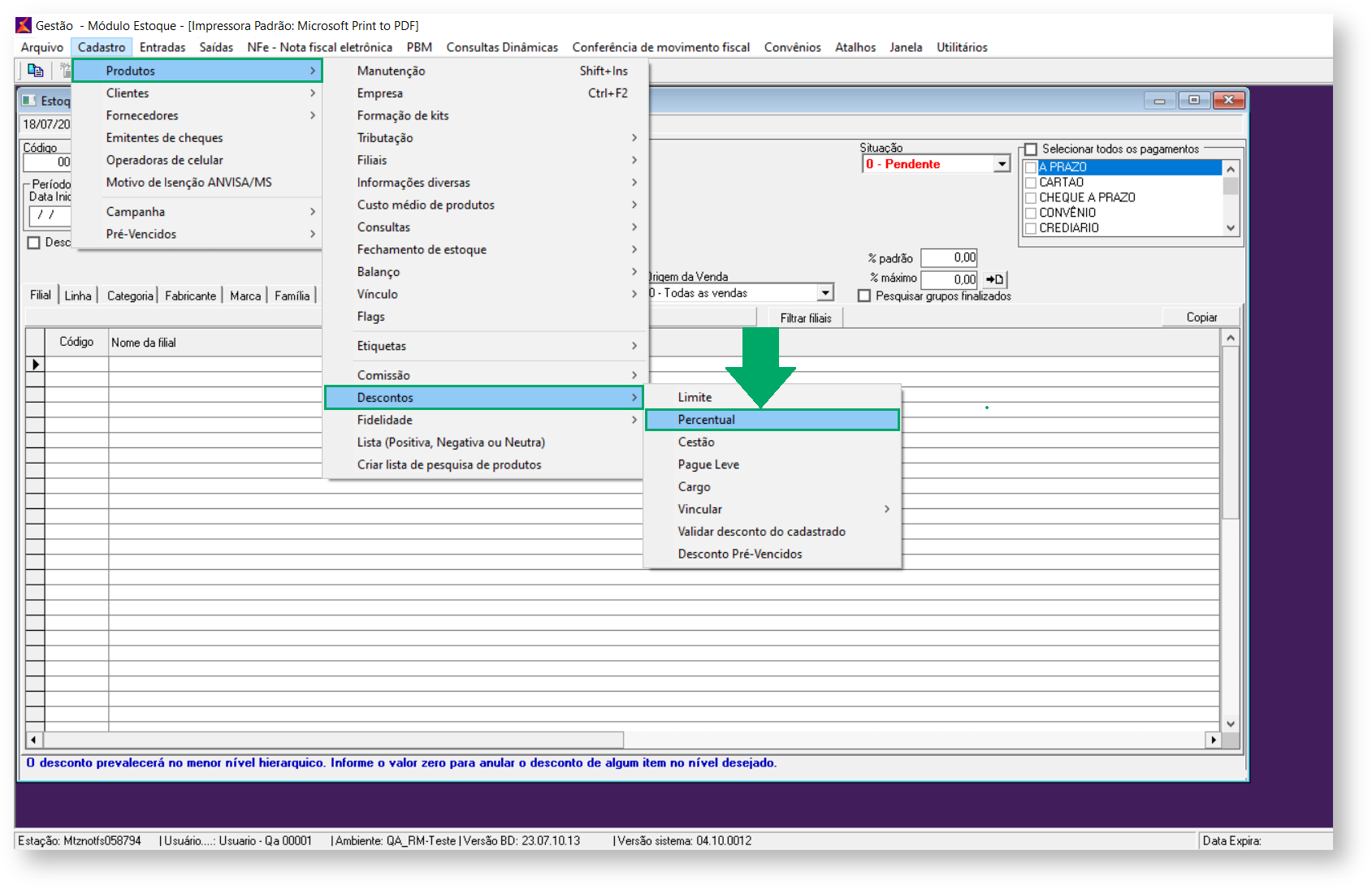 Figura - Acessando o Cadastro de Descontos por Percentual.