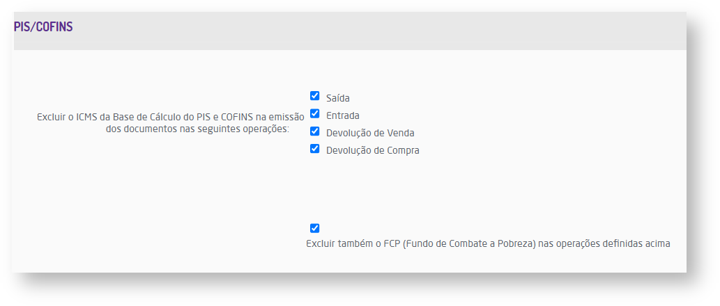 Parâmetros para exclusão de ICMS e FCP, da base de cálculo de PIS e COFINS