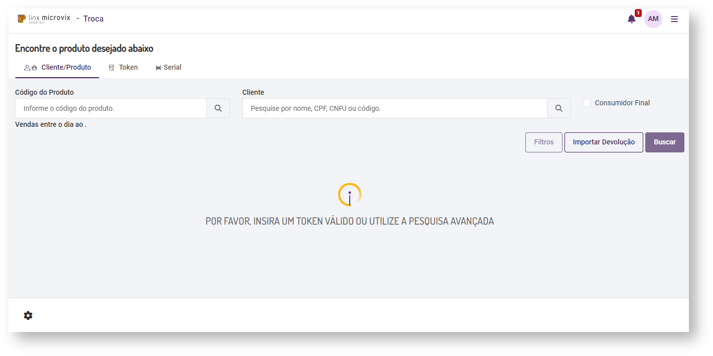 - Na listagem dos itens disponíveis para troca serão exibidos os últimos 30 registros, listando por primeiro as últimas vendas registradas da loja logada. Além disso, não serão listados os produtos inseridos em outra troca (token utilizados).