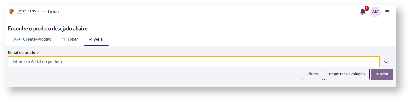 - Serial do Produto: permite realizar a busca pelo número do serial do produto;