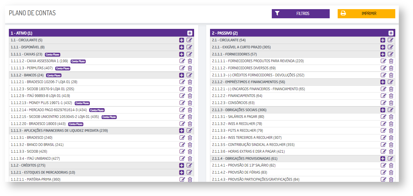 O acesso ao Plano de Contas também está disponível em Adm./Financeiro > Cadastros Auxiliares > Contabilidade > Plano de Contas.