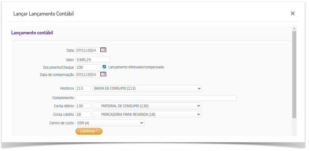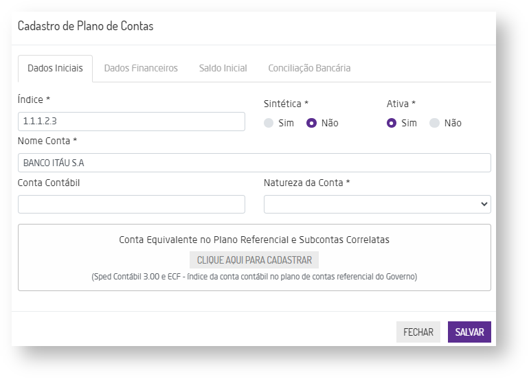 Com uma conta cadastrada no sistema, o próximo passo é realizar a configuração e vinculação de uma Conta Contábil.