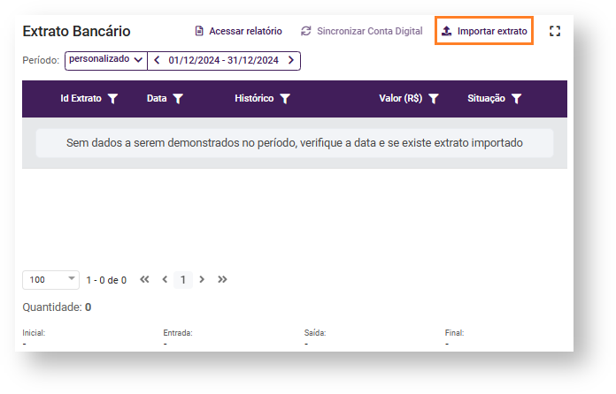 Com a Conta Digital Integrada, não é preciso importar o extrato manualmente, pois o sistema realiza essa tarefa automaticamente por meio da integração com o banco.