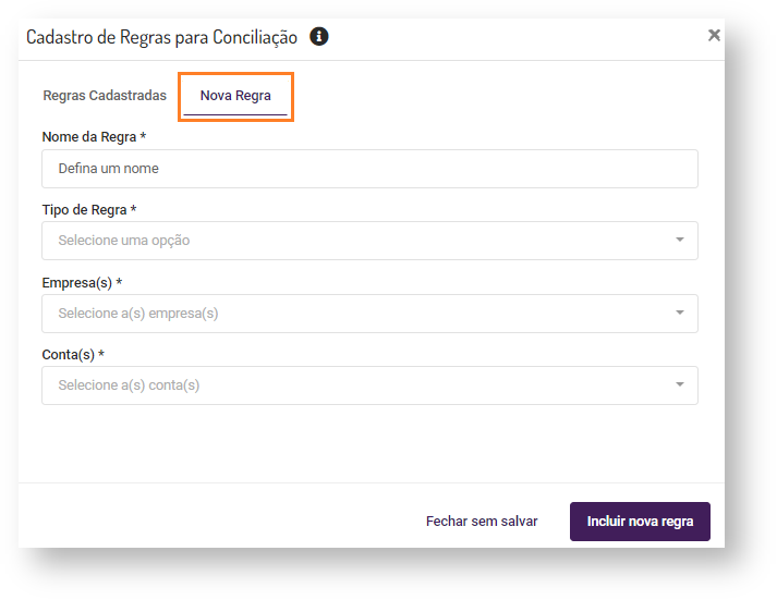O cadastro de regras personalizadas está disponível somente no conciliador bancário.