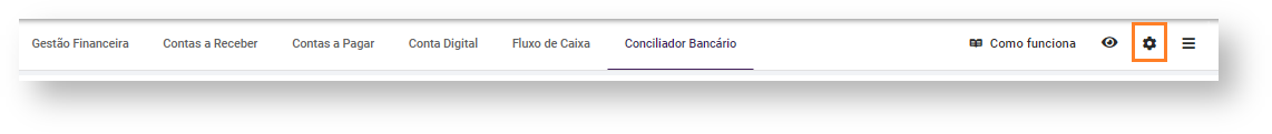 Acesse Adm./Financeiro > Tesouraria e, em seguida, selecione "Conciliador Bancário" para ter acesso a várias funcionalidades, como: