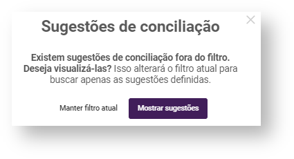 - Conciliar: Esta opção estará disponível apenas quando forem listadas sugestões de conciliação.