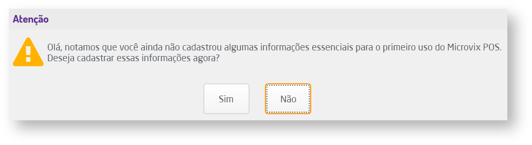 Para realizar uma venda no POS existem algumas configurações mínimas necessárias para serem feitas. Então quando o sistema identificar uma configuração ainda para ser definida, serão exibidas mensagens com atalhos para que o usuário possa estar configurando.
