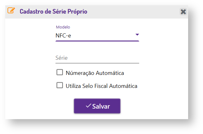 - No cadastro de estação para os tipo de emissões NFC-e e SAT, o usuário pdoerá cadastrar uma série nova a partir do botão de .