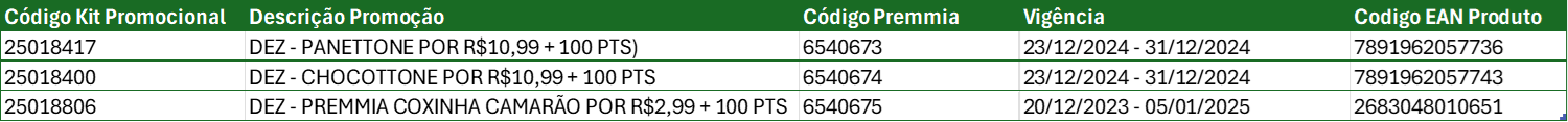 Tabela de Códigos Promocional Premmia - Promoções de Fim de Ano