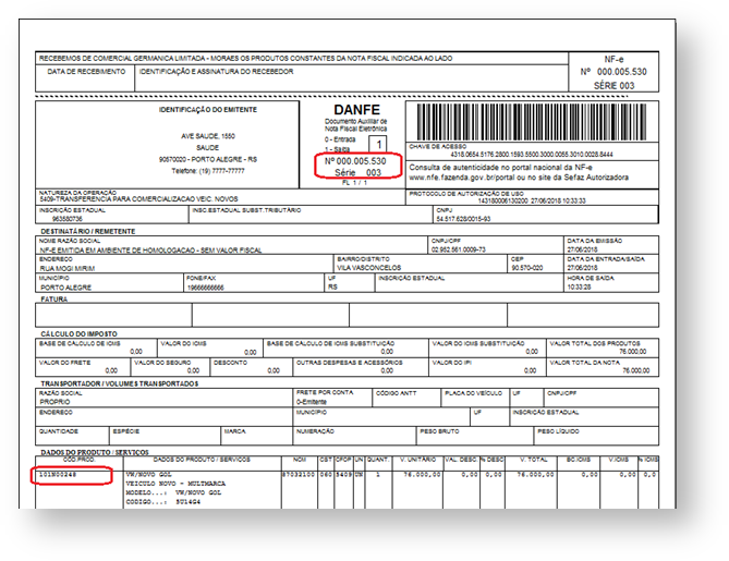 A entrada desta nota será feita de forma automática na filial de destino deixando o veículo disponível para venda.