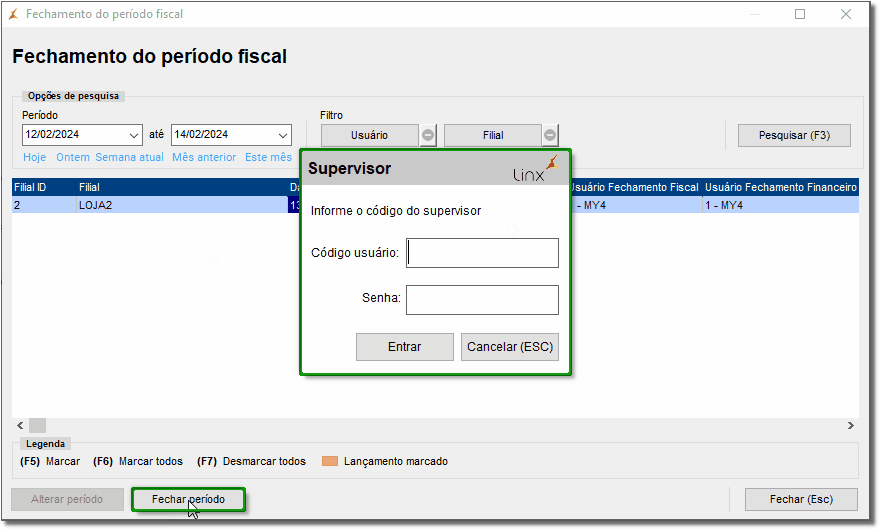 será possível efetuar a pesquisa do período inserido, se existir algum fechamento do período fiscal.