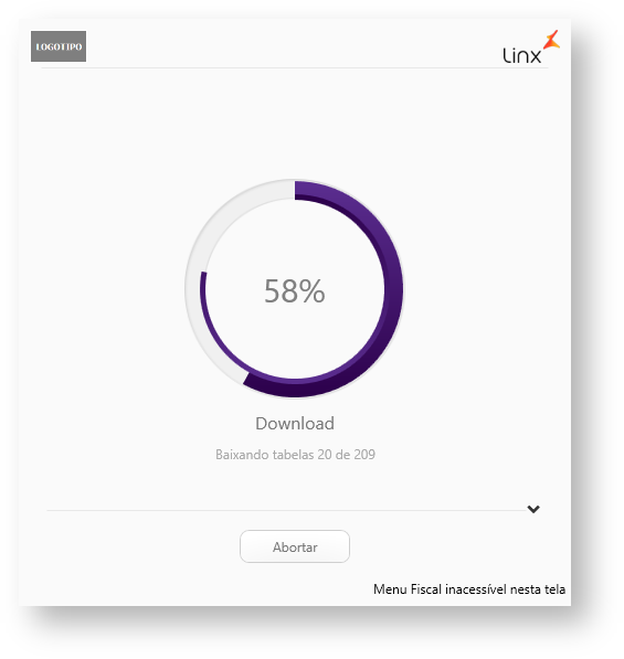 A execução deste processo pode ser demorada, pois depende de vários fatores, dentre eles, uma conexão lenta com a internet, por exemplo. Portanto, nestes casos, o usuário poderá optar por interromper a sincronização após o tempo mínimo de cinco minutos, desta forma, se o processamento alcançar este tempo, o sistema exibirá o botão "Abortar".