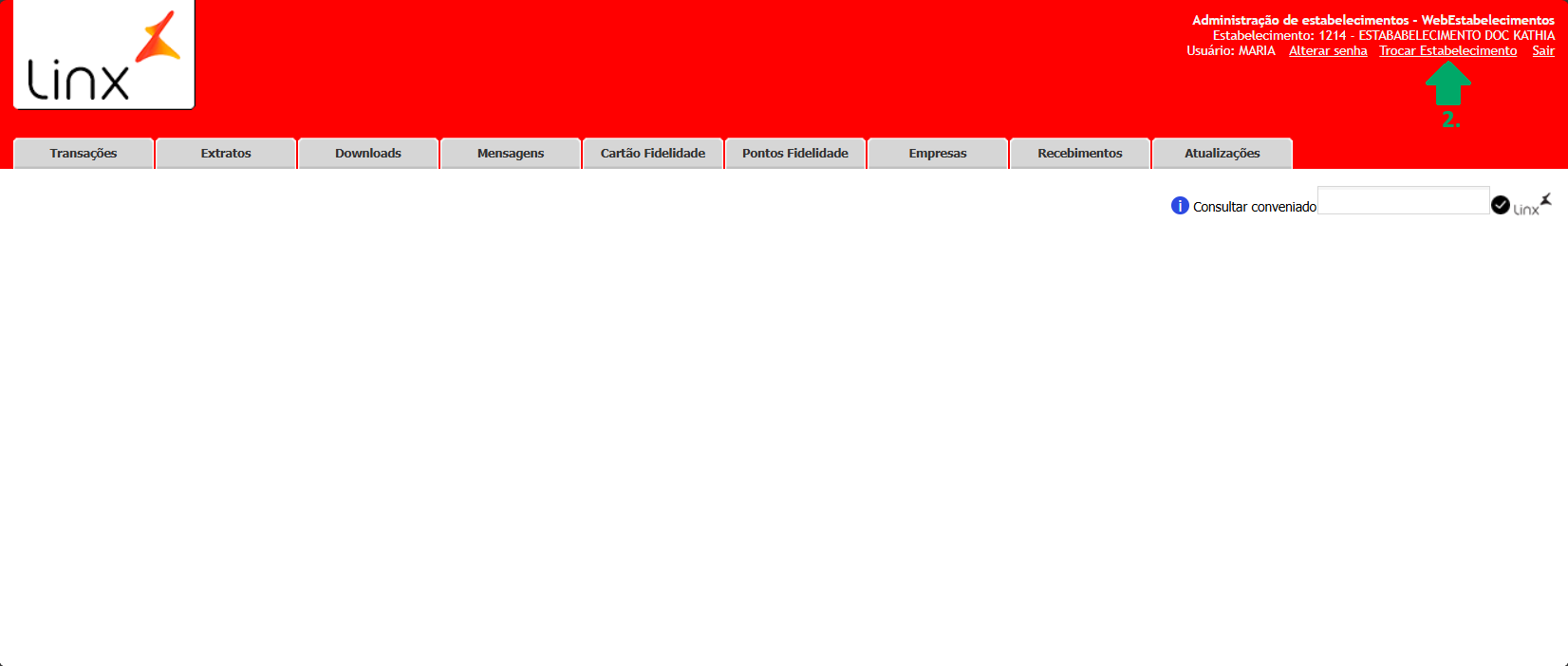 4. E será realizado a troca do estabelecimento que no cabeçalho pode ser verificado qual estabelecimento está logado.