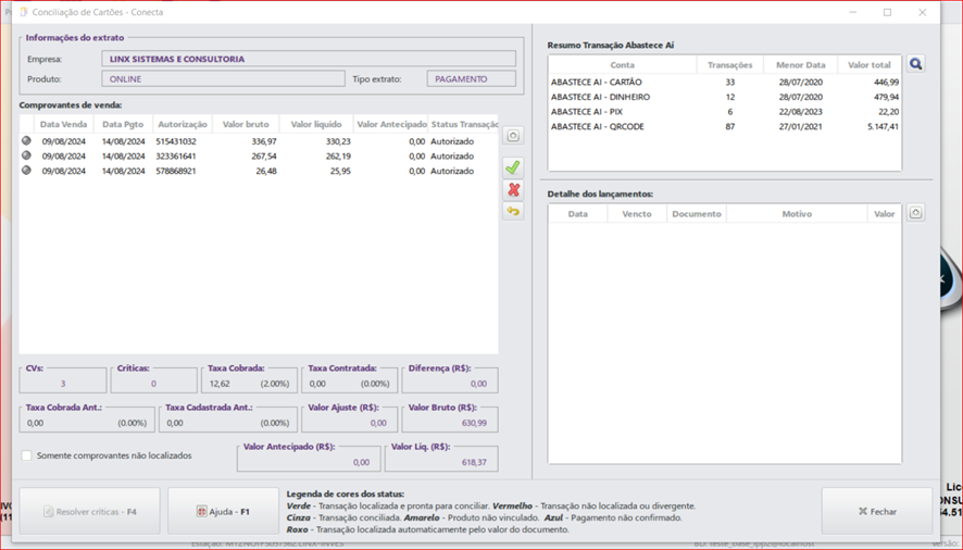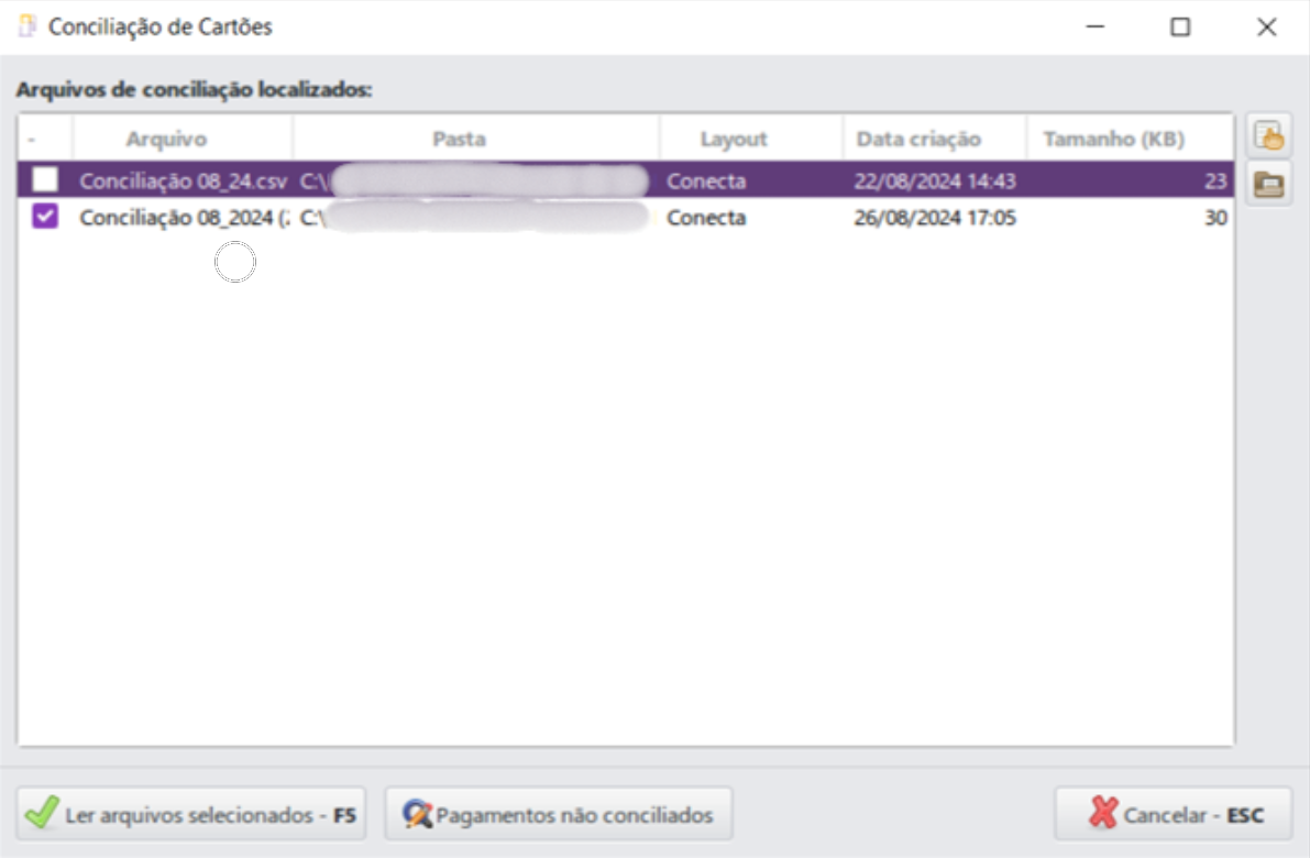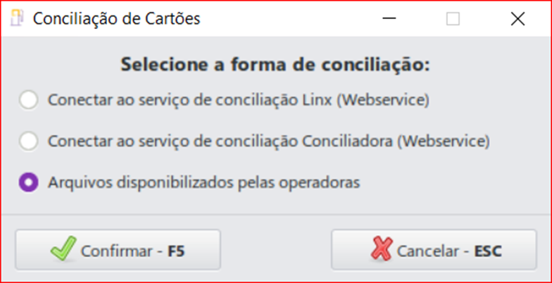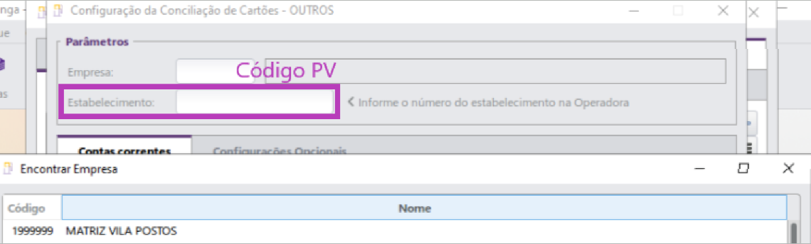 Não é necessário realizar nenhuma pré-configuração no sistema para a utilização da conciliação de cartões.