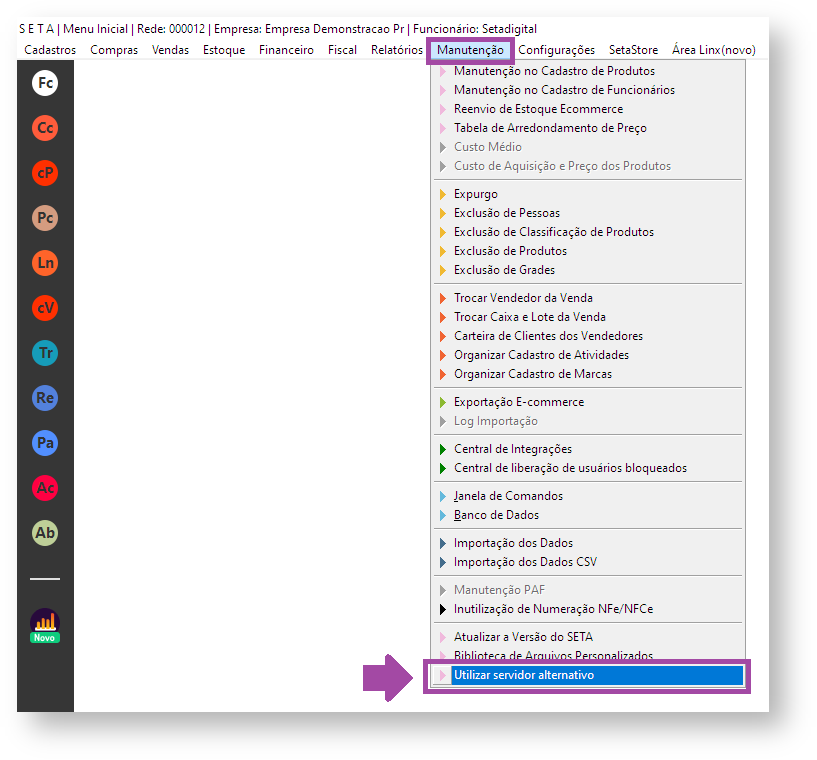 Foi adicionado o item "Utilizar servidor alternativo" no Modulo Retaguarda > menu Manutenção: