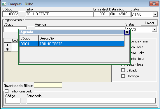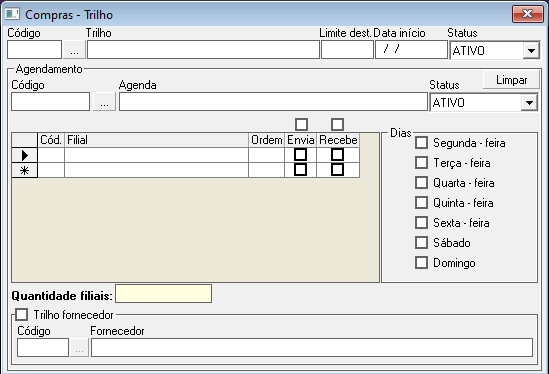 - Abrirá a tela "Compras - Trilho";
