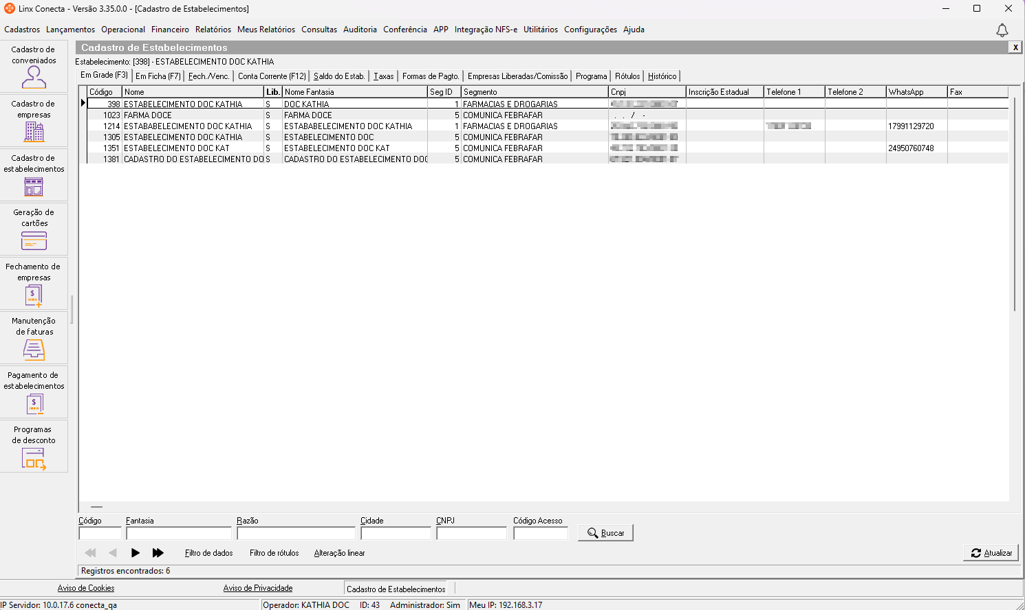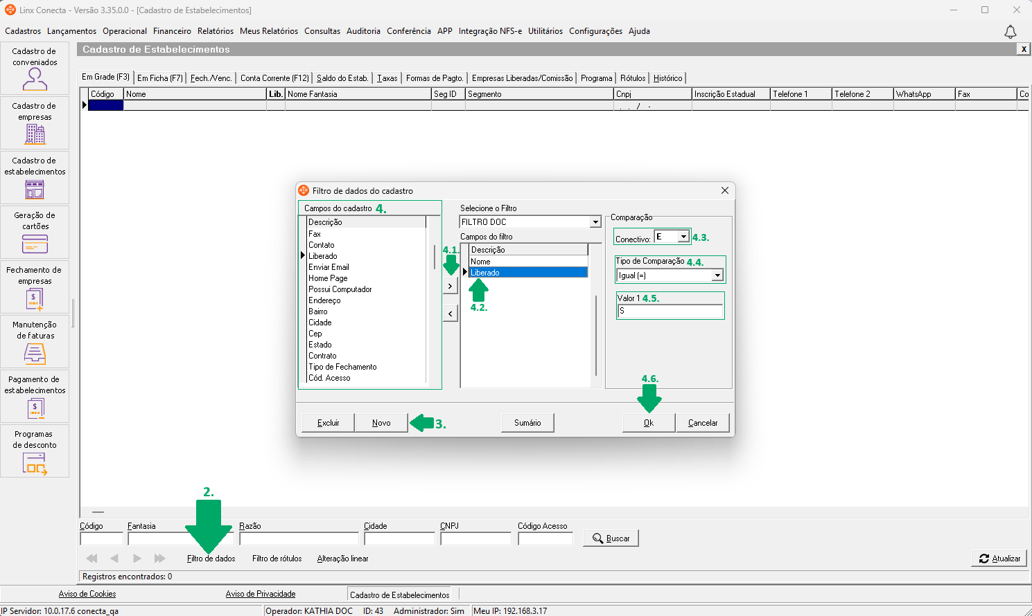 Como criar filtro de dados no cadastro de estabelecimentos, no módulo Conecta?