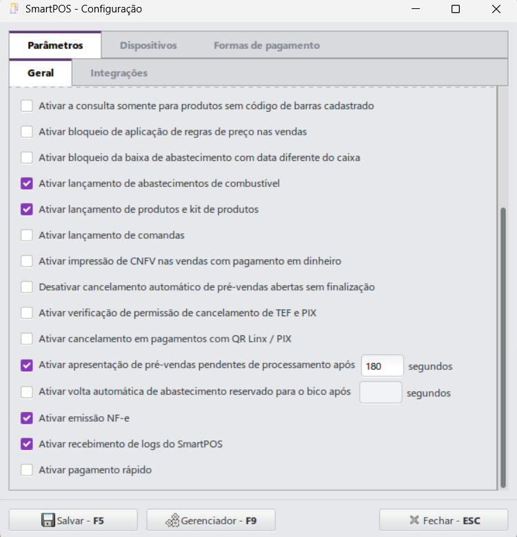 Para configurar, acessar: Autosystem > Configurações > Módulos > Integração SmartPOS > Ativar Emissão NF-e.