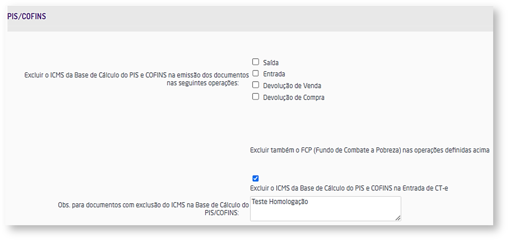 Aba Impostos, da configuração de importação de CT-e