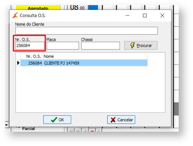Exemplo: Informe o número de uma determinada O.S. e clique em Procurar.