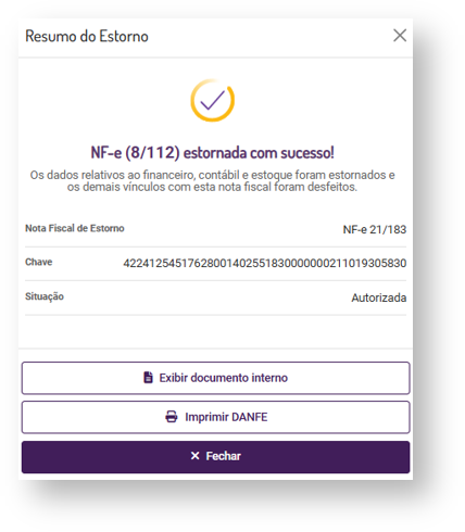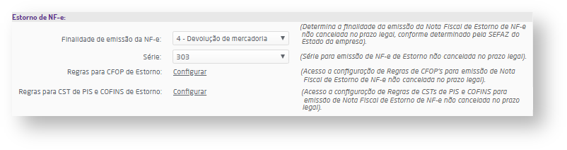 As configurações para a emissão da nota de estorno são realizadas automaticamente pelo sistema, dessa forma a nota será gerada de forma automática sem necessidade de parametrização.