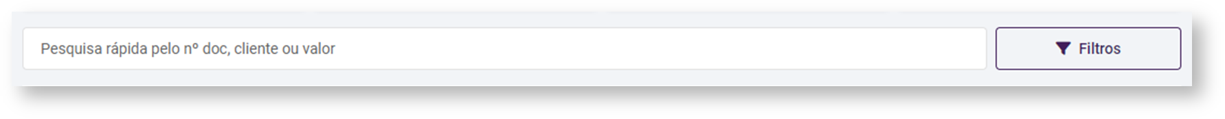 Para encontrar uma venda mais facilmente, poderá utilizar a barra de pesquisa rápida informando o n° do documento, o cliente ou o valor da venda.
