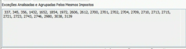 - Campo de visualização em lista para exibir todas as exceções que fazem parte de determinado agrupamento por quantidade de impostos. Benefício: Permite identificar redundâncias e otimizar a geração de novas exceções com base em agrupamentos.