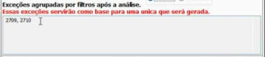 Objetivo: Exibir o conjunto final de exceções após a aplicação de filtros e regras definidas.