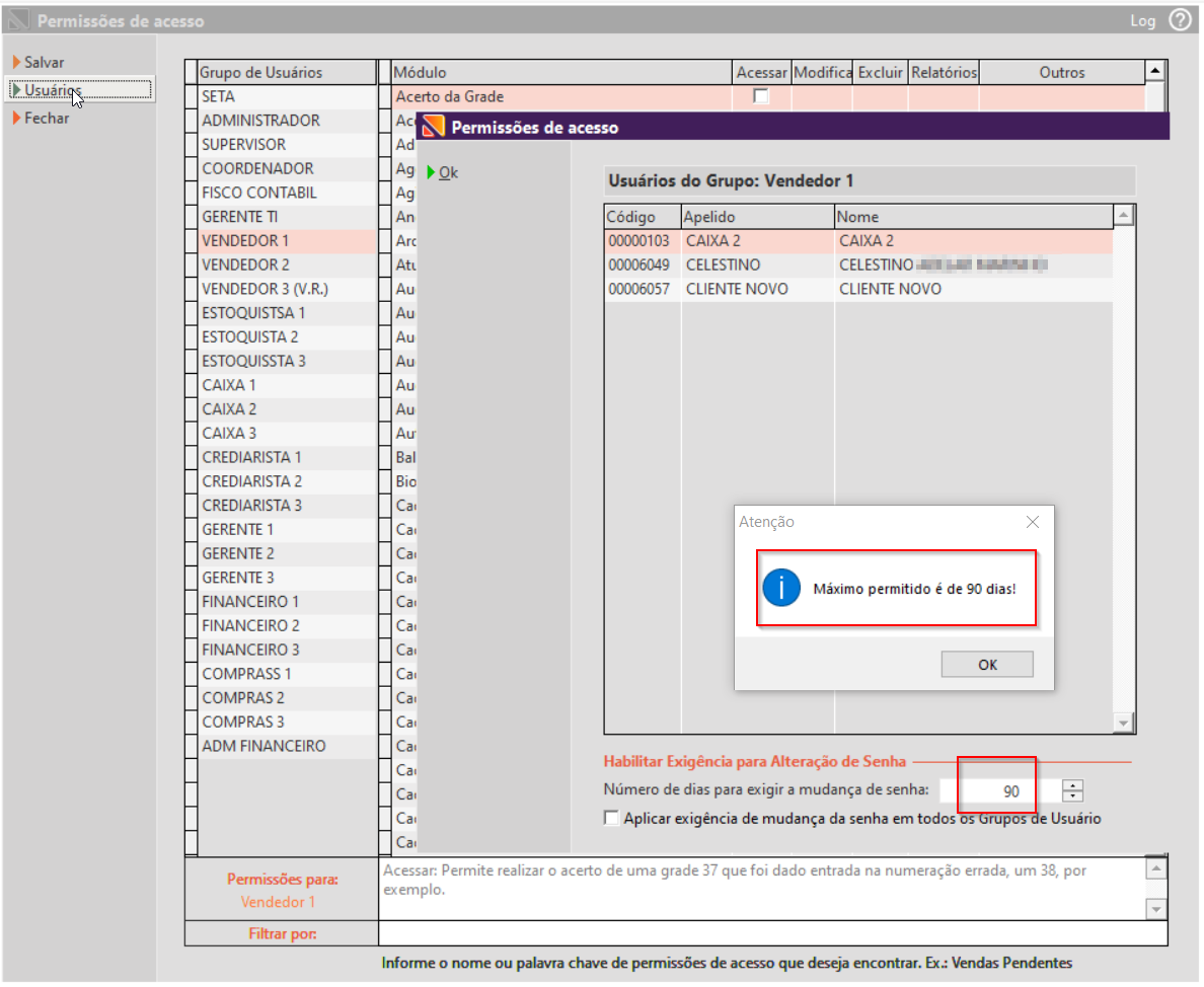 Lembre-se: Usuário que é administrador são aqueles que possuem o acesso a permissões ou central de liberação de usuários bloqueados
