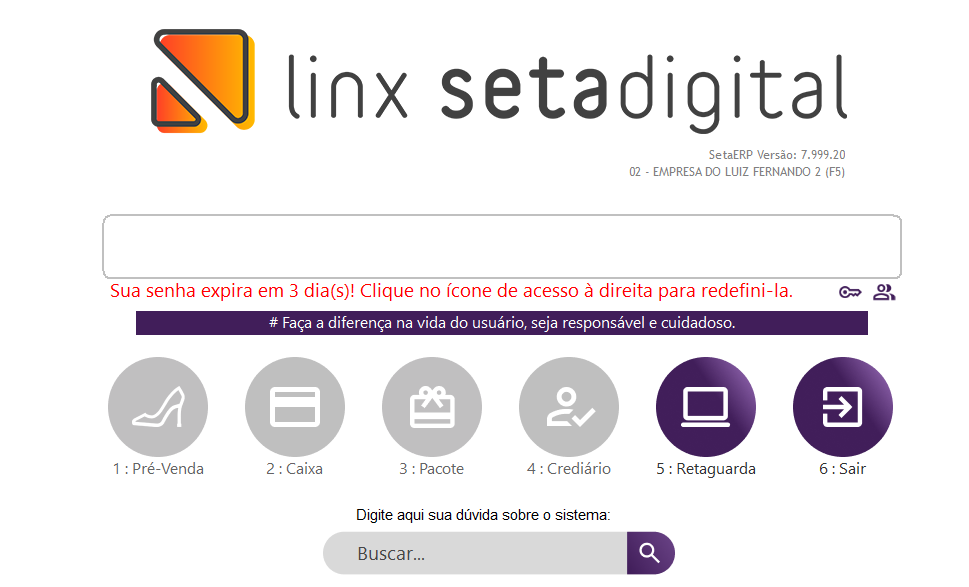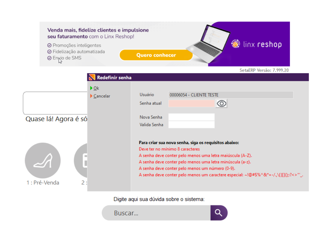 Obs.: A senha provisória só será usada para gerar a nova senha, jamais será usada para logar no sistema.