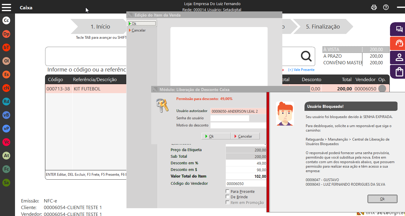 - Entre com login e senha com um dos usuários administrador, acesse o retaguarda, manutenção, Central de Liberação de Usuários Bloqueados