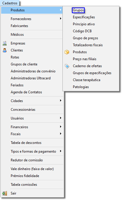 Caso deseje alterar para um grupo de produtos basta acessar através do menu Cadastro > Produtos > Grupos.