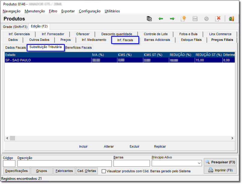 Para realizar a atualização apenas no produto, vá até a aba “Substituição Tributária”.